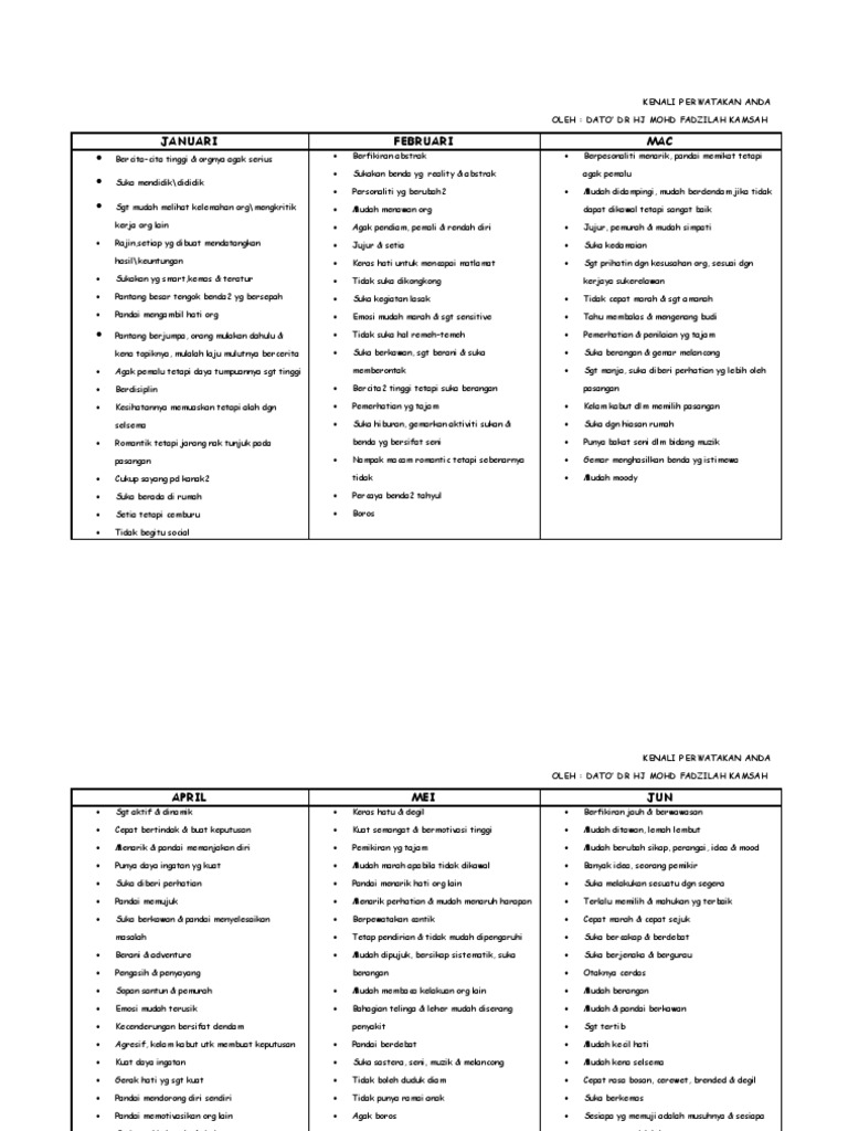 MENGENAL PERSONALITI DIRI SENDIRI MELALUI RAHSIA BULAN DAN KELAHIRAN Berikut disenaraikan kajian mengenai bulan dan sikap anda yang telah dijalankan oleh Yang. Staff Scientist Field Applications at Thermo Fisher Scientific. Ketahui dan Pahami Kelebihan dan Kelemahan.